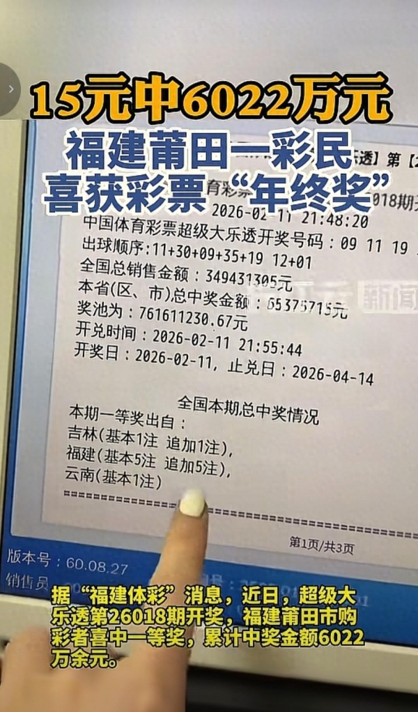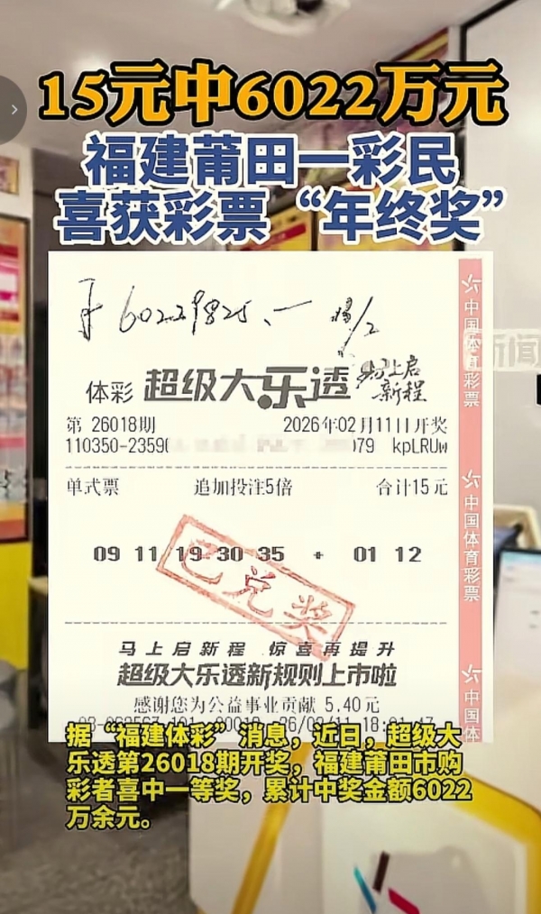 六合彩,六合彩开奖结果,六合彩预测,六合彩走势图,六合彩投注,六合彩技巧,六合彩结果今期,六合彩玩法距离2026年春节只剩最后几天,全网都被一条真实的天降横财砸得眼红心跳。福建莆田一位彩民,仅花15元购买超级大乐透,一举命中6022万元巨奖,一夜之间实现人生逆袭,成为春节前全国最幸运的人。消息传开,彩票站沸腾、网友刷屏、老彩民直呼哭晕在柜台,大家一边羡慕,一边感慨:同样是买彩票,为什么有人随手15元封神,有人买了十几年却连大奖的边都摸不到?